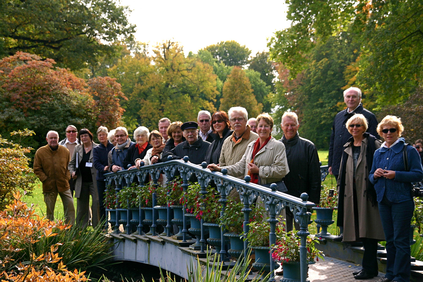 Die Rückreise am 3. Oktober brachte noch einmal einen Höhepunkt und ein einmaliges Erlebnis. Von Görlitz ging es in aller Herrgottsfrüh schnurstracks nach Norden, an der Neiße entlang, bis nach Bad Muskau und hinein in einen der berühmtesten Parks Europas - in den Fürst-Pückler-Park. Was dieser Fürst, eine der schillerndsten Figuren seiner Zeit, in der ersten Hälfte des 19. Jahrhunderts hier in der Oberlausitz geschaffen hat, ist einzigartig. Sowohl die Parkanlage selbst als auch die Bepflanzung mit Bäumen und Sträuchern aus aller Herren Länder, die der Fürst selbst bereist hat, sind eine Reise wert. Das riesige Areal, das zu etwa einem Viertel diesseits der Neiße auf deutschem Gebiet und zu dreiviertel jenseits der Neiße auf polnischem Gebiet, das problemlos betreten werden kann, liegt, macht zumindest auf deutscher Seite wieder einen außerordentlich gepflegten und überwältigenden Eindruck, seit es die Stiftung Pückler-Park übernommen und die Unesco zum Weltkulturerbe „Muskauer Park“ erklärt hat. Das Schloss und die übrigen Bauten, die lange Zeit im Dornröschenschlaf lagen und arg verkommen waren, sind restauriert und erstrahlen wieder in altem Glanz. Als die Fremdenführerin, eine seit 40 Jahren in Muskau tätige Lehrerin, zu Beginn erklärte, man müsse sich zur Besichtung auf mindestens zwei Stunden einrichten, war zunächst Skepsis angesagt. Doch nach den zwei Stunden, die bei strahlendem herbstlichen Sonnenschein, der natürlich alles noch mehr verklärte, wie im Fluge vergingen, herrschte ebenso großes Erstaunen wie Bewunderung ob dieses großartigen Erlebnisses.